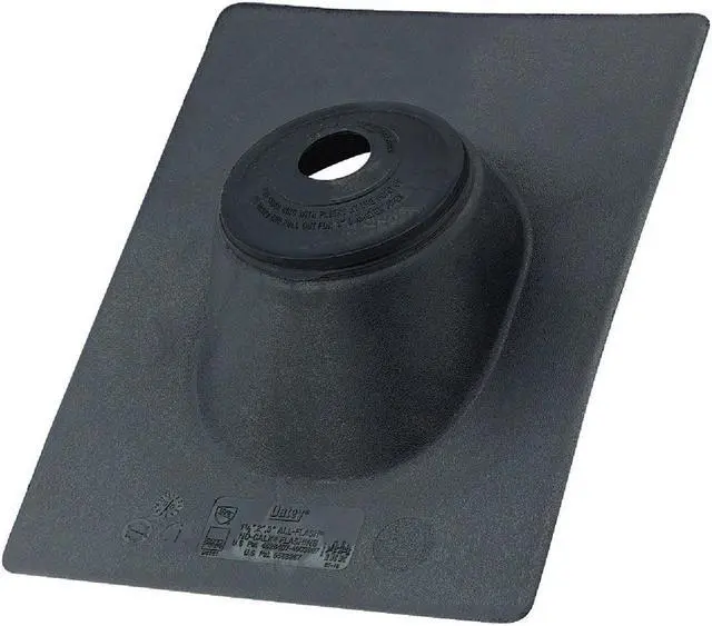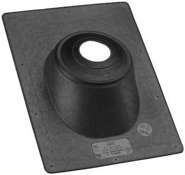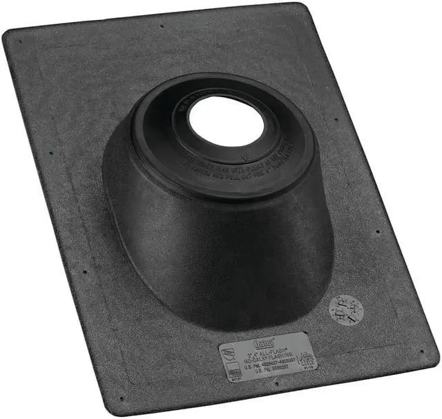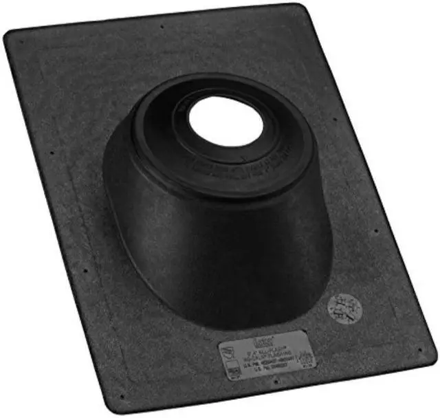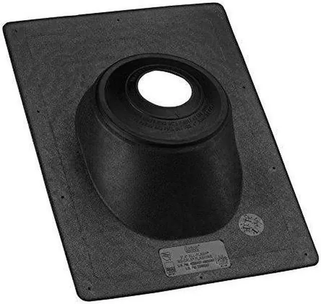 One-piece construction eliminates any possibility of the collar coming off. Patent pending. Patented positive double seal ensures leak-free fit around vent stack. Black color blends with modern roofing material colors and is an excellent weathering color. No-Caulk collar allows plenty of room for expansion and movement of pipe. Gives with the movement of the pipe while maintaining leakproof seal. Fits roof angles from flat to 45 deg.. Will not warp or crack. Never needs caulking. Fits all types of pipe, copper, cast-iron, plastic, aluminum, and galvanized.