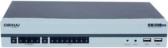 MAIN OVERVIEW FEATURES: PoE (RJ-45) Port: NoUSB: YesManagement Port: NoNumber of Network (RJ-45) Ports: 4Number of FXS (RJ-11) Ports: 8Ethernet Technology: Gigabit EthernetNetwork Standard: 10/100/1000Base-TForm Factor: Desktop,Wall Mountable,Rack-mountableHeight: 1.8"Width: 10.6"Depth: 6.5"Weight (Approximate): 2.76 lbPackage Contents: OBi508 VoIP Gateway Rack Mount Power Adapter 1 x RJ-11 Phone Cable 1 x RJ-45 Ethernet Cable (80in/203cm) Quick Start/Installation Guide Green Compliant: YesGreen Compliance Certificate/Authority: RoHS,WEEELimited Warranty: 1 Year