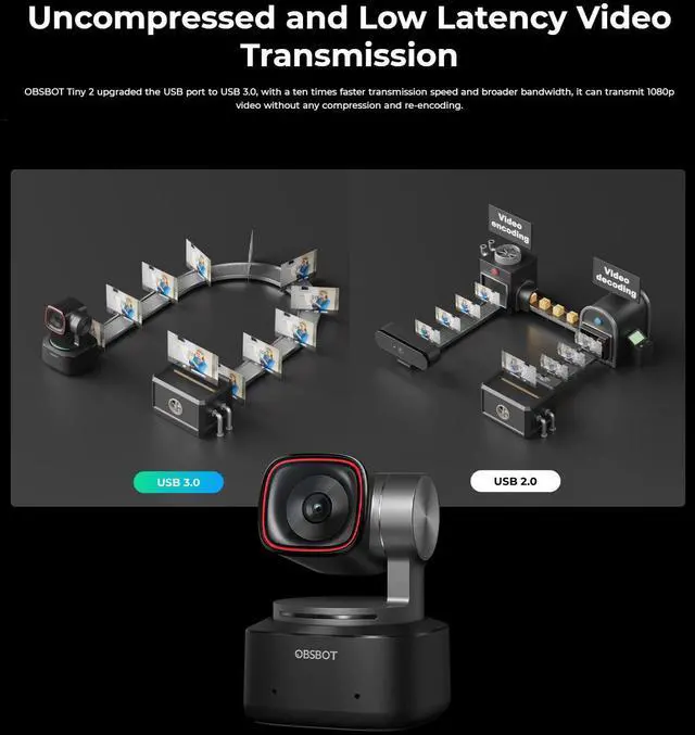 This innovation eliminates the time lag typically associated with traditional HDR, thereby preventing motion blur and ensuring crystal-clear HDR video. The OBSBOT Tiny 2 also incorporates All-Pixel Auto Focus Technology, a significant upgrade over conventional PDAF systems. This technology utilizes every pixel on the 50-megapixel sensor to achieve precise and 4X faster focusing, even in low-light scenarios. Additionally, the Beauty Mode feature allows users to enhance their appearance effortlessly, smoothing skin and brightening eyes with a single click. For seamless video transmission, the webcam is equipped with an upgraded USB 3.0 port, enabling uncompressed and low-latency video streaming.