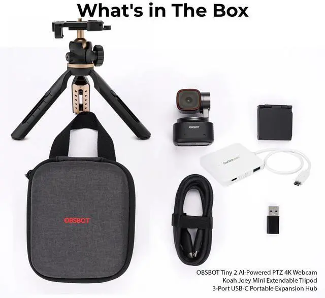 The dedicated remote controller and compatibility with the Elgato Stream Deck add to its flexibility. Moreover, the OBSBOT Center App (formerly OBSBOT WebCam) provides enhanced control and customization options, improving the overall meeting experience. In summary, the OBSBOT Tiny 2 4K Ultra HD USB-C AI-Powered PTZ Webcam is more than just a webcam; it is a transformative tool for video communication and content creation, offering unparalleled quality and intelligent features that redefine the user experience.
