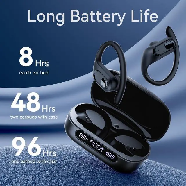 96hrs Playback and Digital Charging Case: Each ear bud offers up to 8 hours of listening time on a single charge, allowing you to enjoy a total of 96 hours of music by taking turns with the charging case. Wireless earbuds feature a dual digital display that provides real-time battery status. Easily monitor the remaining power and plan your usage accordingly. Wireless bluetooth headphones support wired charging with a Type-C cable and wireless charging.