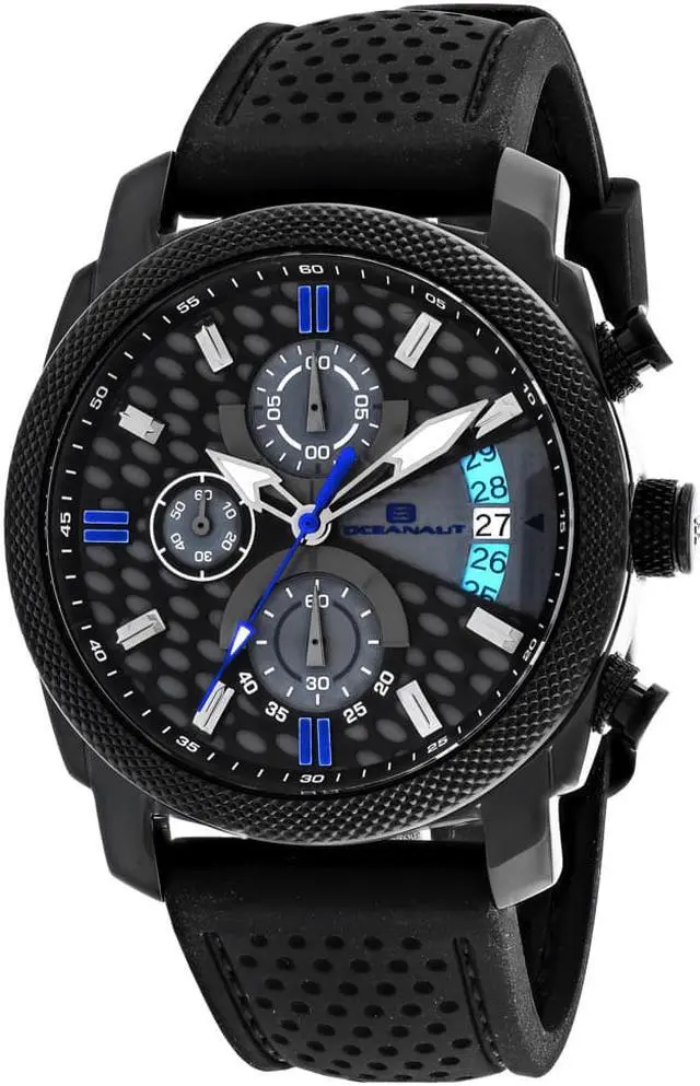Stainless steel case, Rubber Strap, Black and gray dial, Chronograph Quartz movement, Scratch resistant mineral, Water resistant up to 5 ATM - 50 meters - 165 feet
