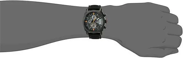 Stainless steel case, Rubber Strap, Black and gray dial, Chronograph Quartz movement, Scratch resistant mineral, Water resistant up to 5 ATM - 50 meters - 165 feet