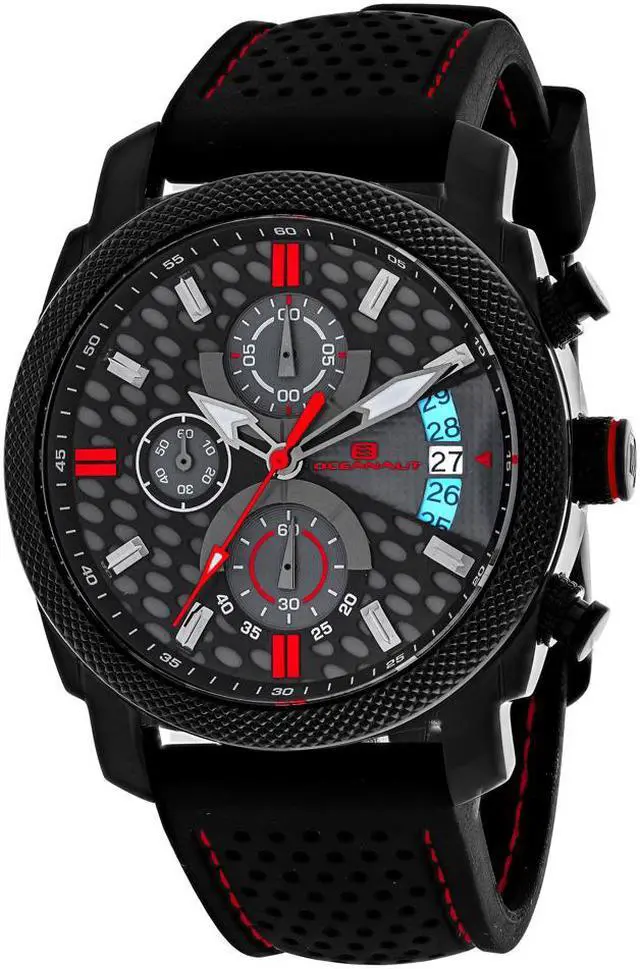 Stainless steel case, Rubber Strap, Black and gray dial, Chronograph Quartz movement, Scratch resistant mineral, Water resistant up to 5 ATM - 50 meters - 165 feet