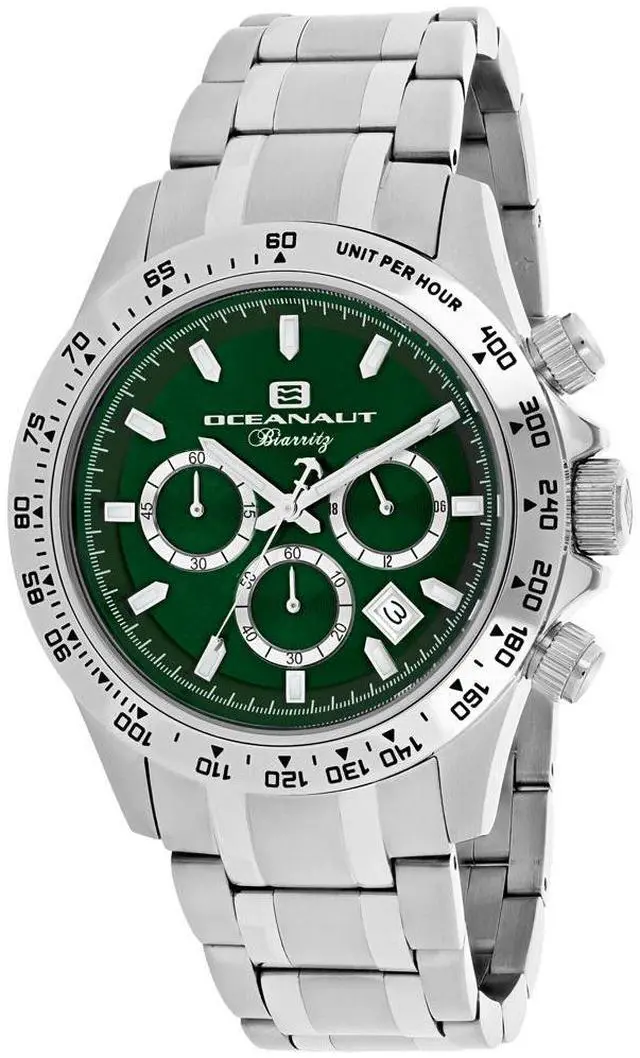 Stainless steel case, Stainless steel bracelet, Green dial, Chornograph Quartz movement, Scratch resistant mineral, Water resistant up to 10 ATM - 100 meters - 330 feet