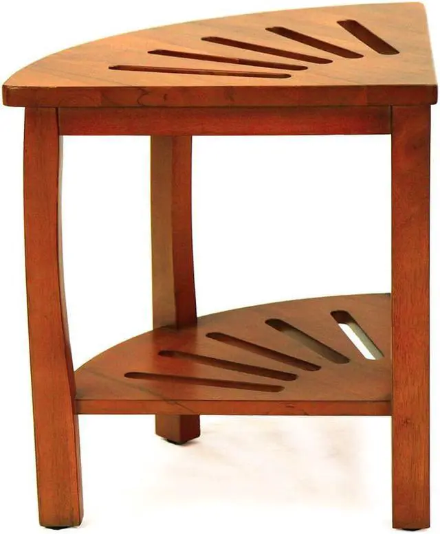 Create the ideal spa atmosphere in your home and bath setting with the Oceanstar Corner Spa Shower Bench Seat with Storage Shelf. Whether you need an extra seat or stool in the shower, a storage shelf, an entryway seat, or just a bench to sit and relax, the Oceanstar spa bench is multifunctional and designed to make full use of your space anywhere in the home. The rounded triangular shape allows it to be optimally placed in corners or next to furniture. It is made with Thailand Rubberwood for durability and designed to complement any home environment.