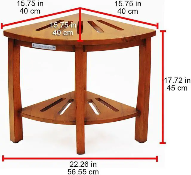 Both top and bottom shelf features slats for better air circulation and water flow. Each leg has a nonslip leveler that keeps the bench slightly elevated and provides stability. No assembly is required so you can start using the Spa bench as soon as it arrives. No matter the size of your home, the Oceanstar Corner Spa Shower Bench Seat helps you save space and make extra room all at once.