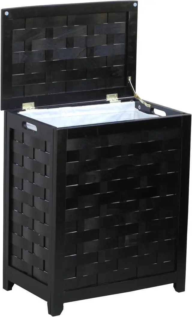 Contemporary design for your bed or bath by adding this laundry hamper to your home décor. This laundry hamper is a solid wood construction hamper; it adds durability and elegance to any room and helps to keep your room neat and contemporary. This laundry hamper comes with a canvas bag and double hinges with hardware and other accessories to assemble. There are also rubber bumpers on the lid which help to prevent damage to the hamper. Two hand grips on the side makes it easy for you to carry your clothes to your laundry room or you can also take out the canvas bag to your laundry room.
