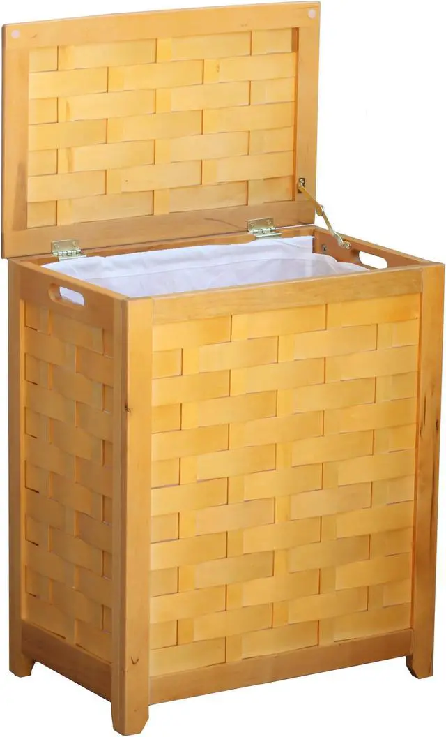 Contemporary design for your bed or bath by adding this laundry hamper to your home décor. This laundry hamper is a solid wood construction hamper; it adds durability and elegance to any room and helps to keep your room neat and contemporary. This laundry hamper comes with a canvas bag and double hinges with hardware and other accessories to assemble. There are also rubber bumpers on the lid which help to prevent damage to the hamper. Two hand grips on the side makes it easy for you to carry your clothes to your laundry room or you can also take out the canvas bag to your laundry room.