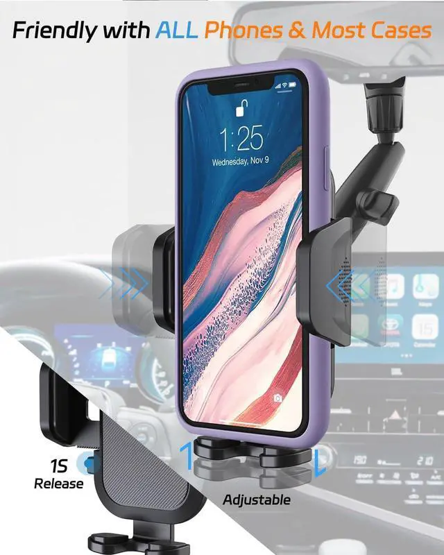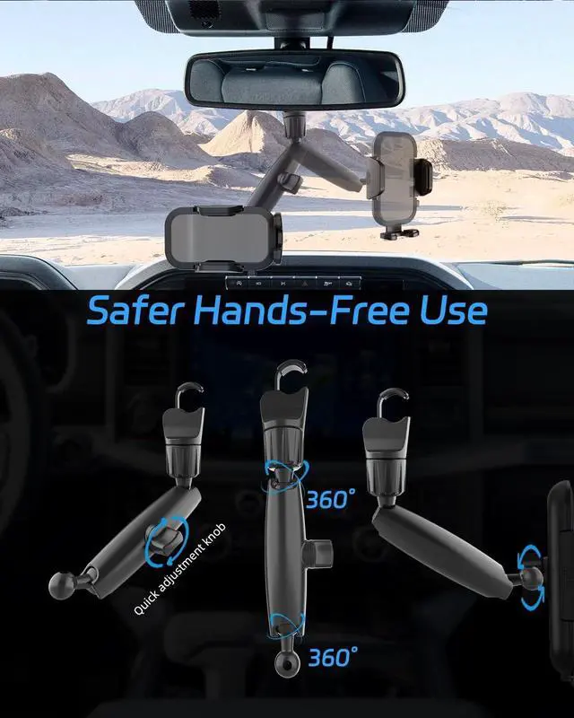 2026 Upgraded Rear View Mirror Phone Holders for Your Car, Multi-Directional Dual 360 Rotatable Adjustment Phone Mount for iPhone Android Cell Phones