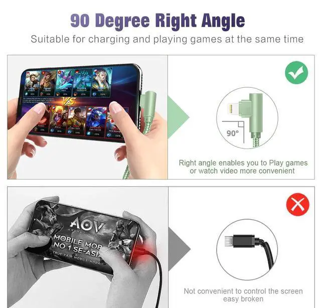 Right Angle Fast Charger iPhone provides carefree experience and is very convenient to charge the mobile phone while playing games and watching movies. The iphone lightning cable will not press your hand and avoid bending or break, so as to extend life of iPhone cable 6ft; 6FT super long apple lightning cable, wear-resistant and free of tangles, allowing you to charge freely in the bedroom, office or even the back seat of the car