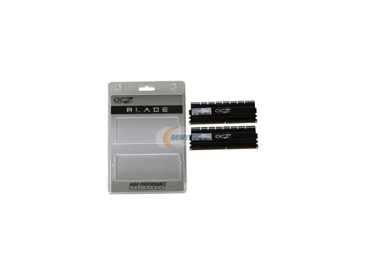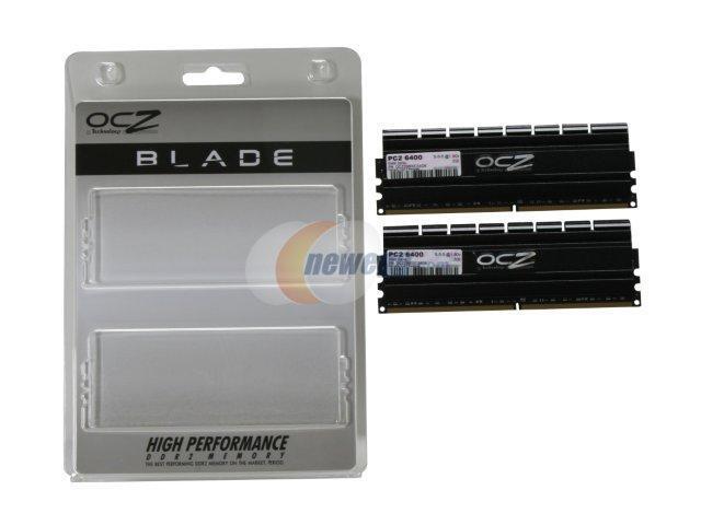 OCZ PC2-6400 Blade Series DDR2 SDRAMDesigned with ample overclocking capability and aggressive latencies, the OCZ PC2-6400 Blade Series DDR2 SDRAM module is rated at 800MHz 5-5-5-15 to significantly increase performance levels of the entire platform.
