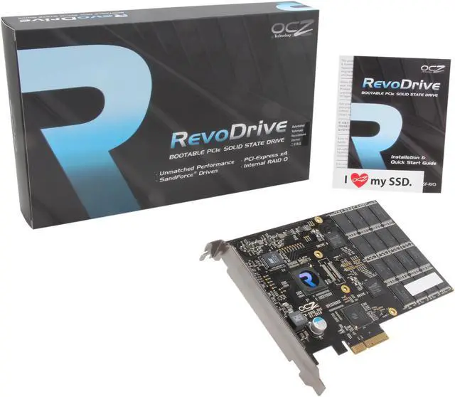 The OCZ RevoDrive makes fast, faster with an innovative performance design that pushes the envelope in solid state technology and leaves hard drives in the dust. Moving beyond the bottleneck of the SATA interface, the RevoDrive features a PCIe interface to deliver superior performance. Designed for high-performance gaming PCs and workstations, the RevoDrive dominates thanks to the unique capability to run both Windows and your essential applications and games. With speeds up to 540MBps and 75,000 IOPS, this bootable PCI-Express SSD not only provides a more responsive PC experience, but promotes cooler, quieter, and more energy efficient conditions compared to traditional mechanical hard drives. The RevoDrive can accommodate a wide range of computing environments such as video-editing and other multi-media creation and management, all while providing the superior durability and reliability of SSDs.