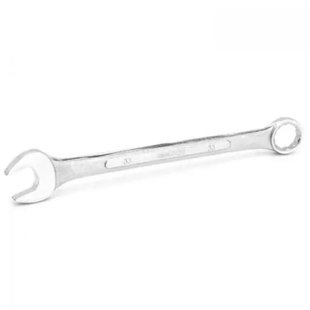 33 mm Jumbo Wrenches are made of high quality dropforged steel and are precision-machined to prevent fastener damage. Durable Chrome Plated Finish is Easy to Keep Clean While Providing a Lifetime of Protection Against Corrosion. Raised-Panel Design for Added Strength. 15° Offset 12 Pt. Box End Design Provides Clearance for Your