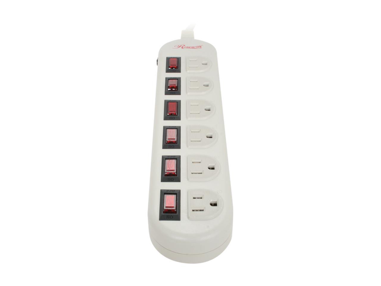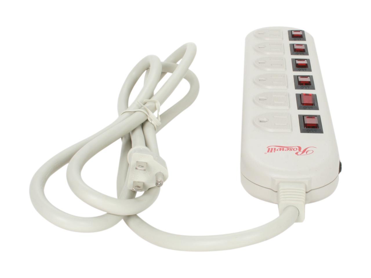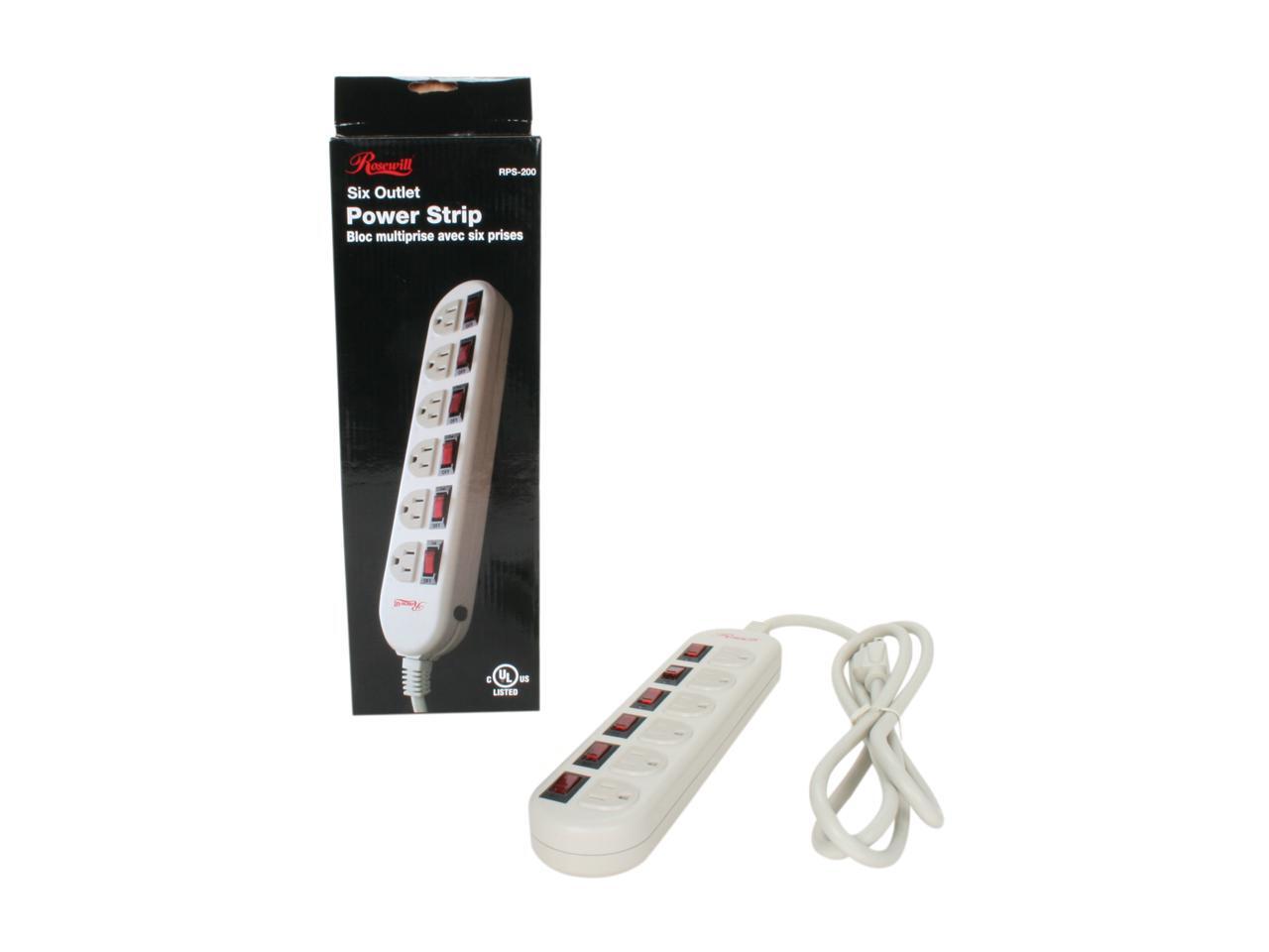 Rosewill RPS-200 - 6 Outlets Power Strip - 125V Input, 1875 Watts Maximum Power Output, 6 Feet Cord