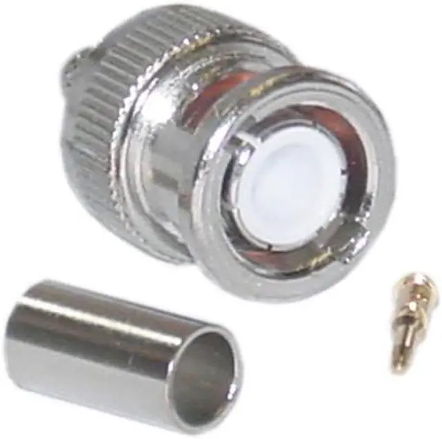 This crimp BNC connector can be used to terminate stranded RG59 coax cable. This connector is perfect for custom wiring jobs. Connection: BNC Male Plug. Weight: 0.02 lbs.