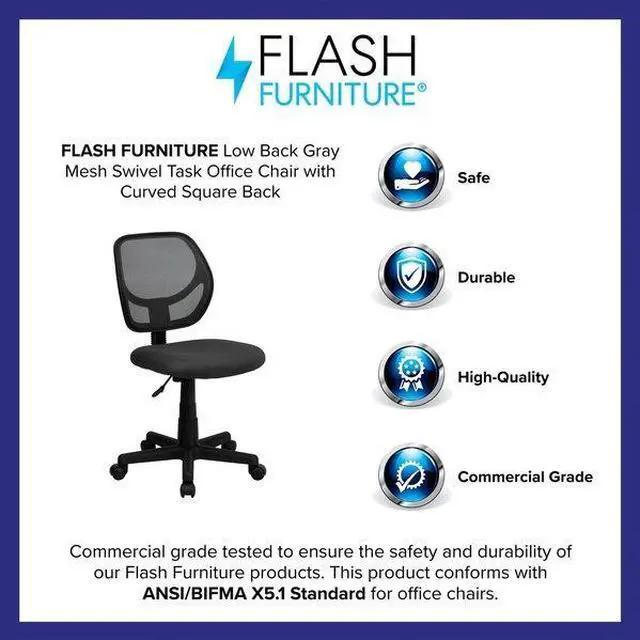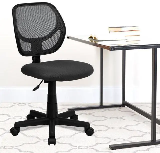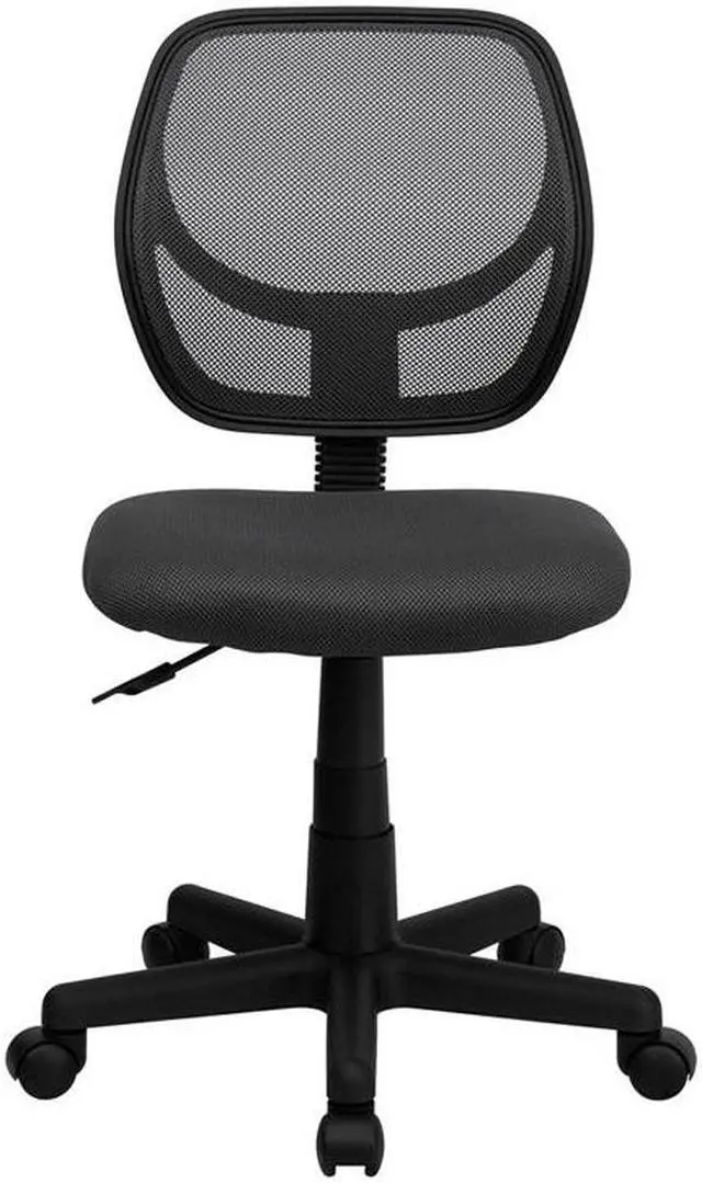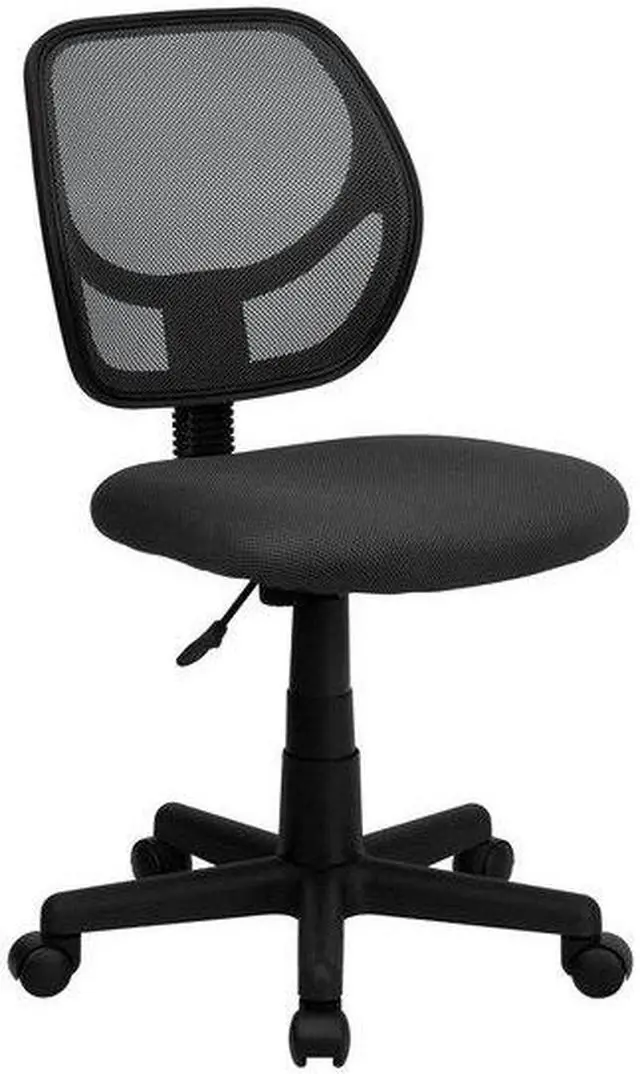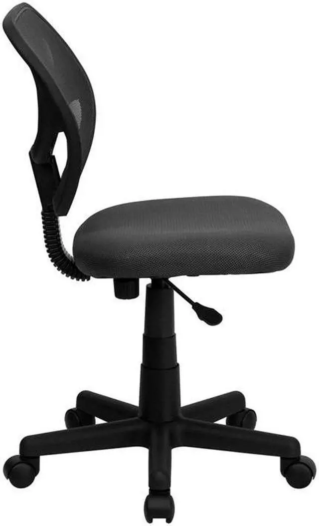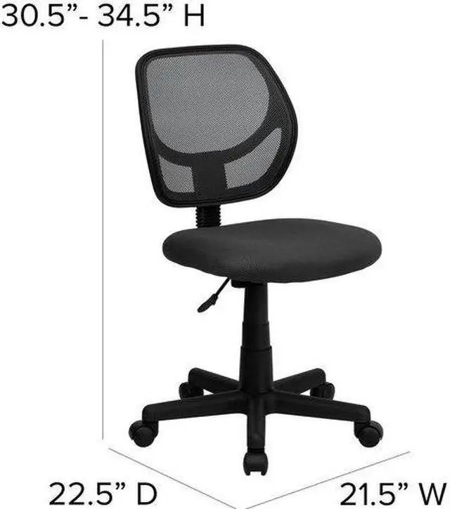 The benefits of a comfortable chair are many and should never be underestimated. This mesh task chair supports you when you're working long hours to get the job done, in your dorm, at the office and at home. The transparent mesh back allows air to circulate, keeping you cool no matter how high the pressure gets. The swivel seat is padded with 2" of foam and covered with gray mesh upholstery. Built-in lumbar support helps prevent back strain and muscle fatigue. Raise and lower the seat using the pneumatic seat height adjustment lever, conveniently located below the seat.