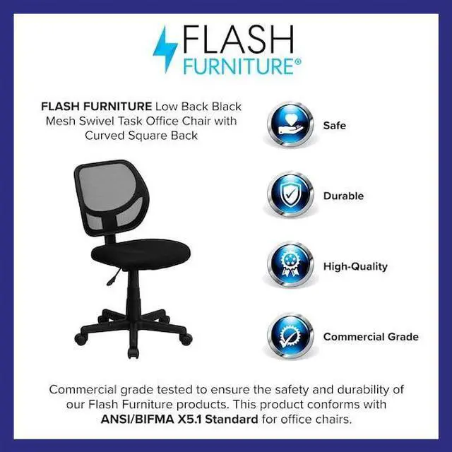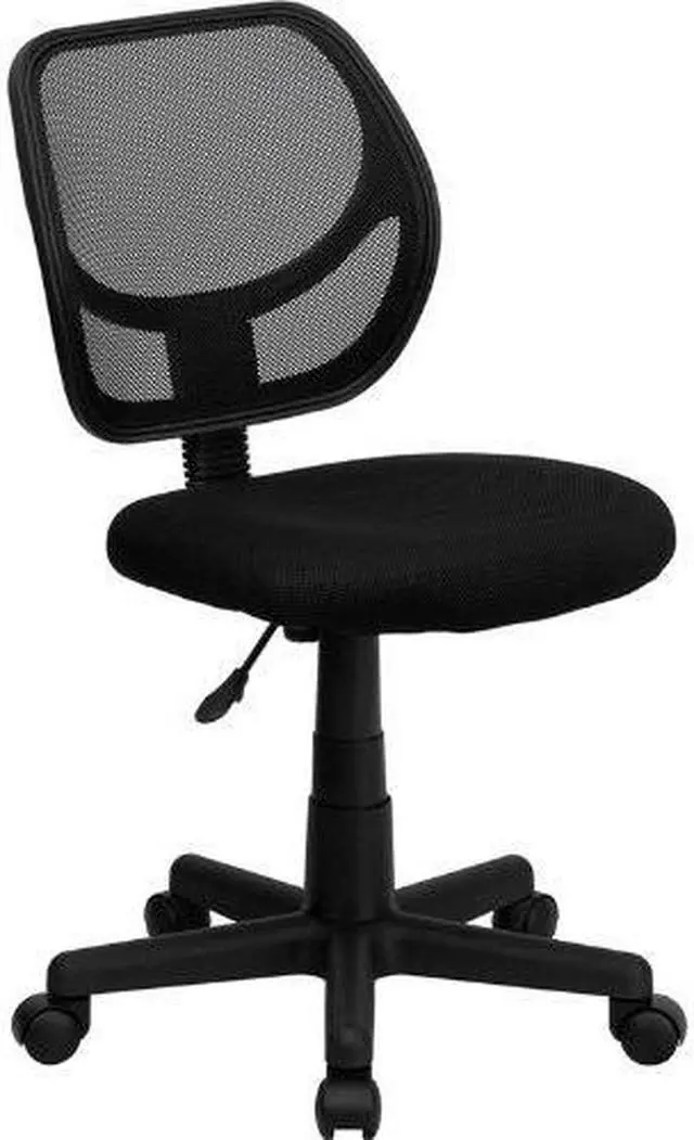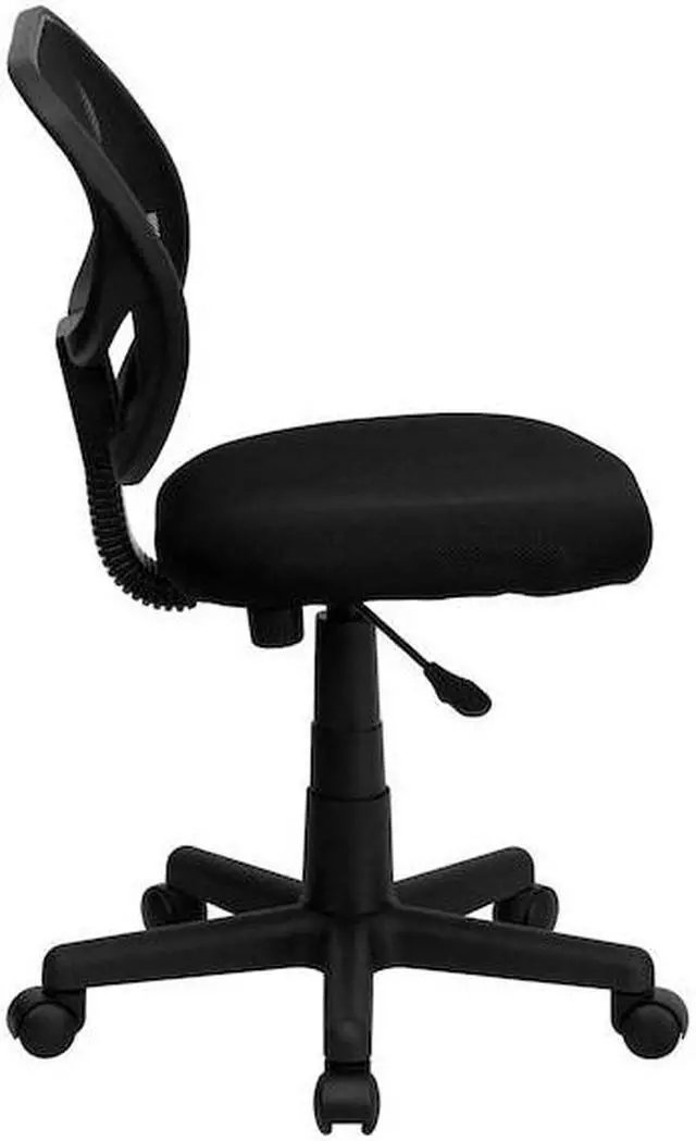The benefits of a comfortable chair are many and should never be underestimated. This mesh task chair supports you when you're working long hours to get the job done, in your dorm, at the office and at home. The transparent mesh back allows air to circulate, keeping you cool no matter how high the pressure gets. The swivel seat is padded with 2" of foam and covered with black mesh upholstery. Built-in lumbar support helps prevent back strain and muscle fatigue. Raise and lower the seat using the pneumatic seat height adjustment lever, conveniently located below the seat.