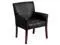 Welcome guests into your business with this gorgeous side reception chair that can be custom embroidered. Place several wooden guest chairs around a round conference table in the office to hold meetings away from the desk. No office, no problem, make a conversational setting off your living room or in that empty room near the entrance, the design pairs well with glass and wooden tables. Fit for any space, this guest chair serves as a comfortable waiting room chair, lobby chair, or office chair. Box stitch upholstery on the back and seat add a refined appearance. High wooden legs finished in a mahogany stain appeal to contemporary and traditional settings. Add sophistication to your office or home with a pair of black LeatherSoft guest chairs. This classically styled side chair will never go out of style, making it a great option for planning for the future of your business.Product Dimension-26.5"W x 23"D x 35.25"H