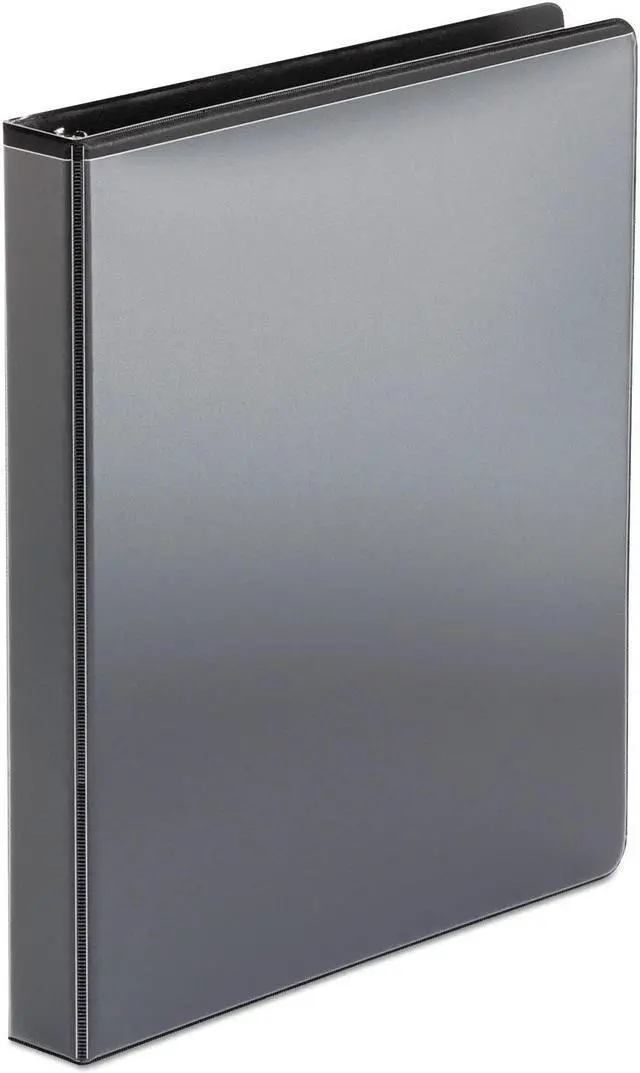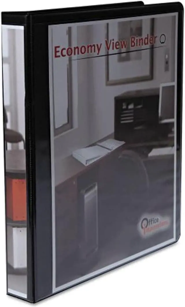 Economical view binder for light use. Non-glare transparent plastic overlays on front cover back cover, and spine for easy customization. Binder features back-mounted rings for added convenience. Two inside pockets provide extra storage for loose documents. Poly material is non-stick. Inserts, pockets and cover wont lift print. Binder Type: Ring; Binder Style: View; Binder Size Capacity: 1"; Binder Sheet Capacity: 225.