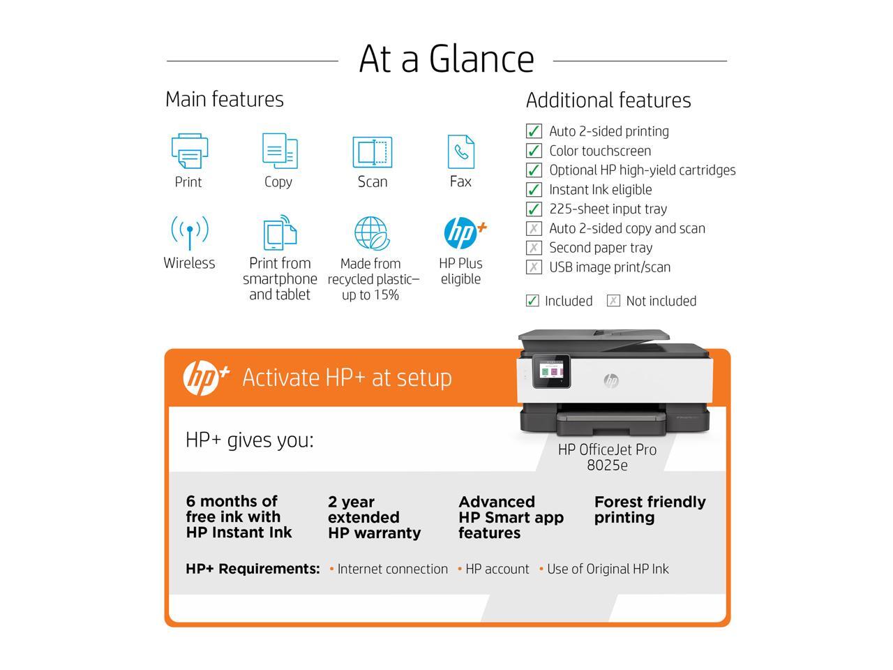 HP OfficeJet Pro 8025e All-in-One Wireless Color Printer, with bonus 6 months free Instant Ink with HP+ (1K7K3A)