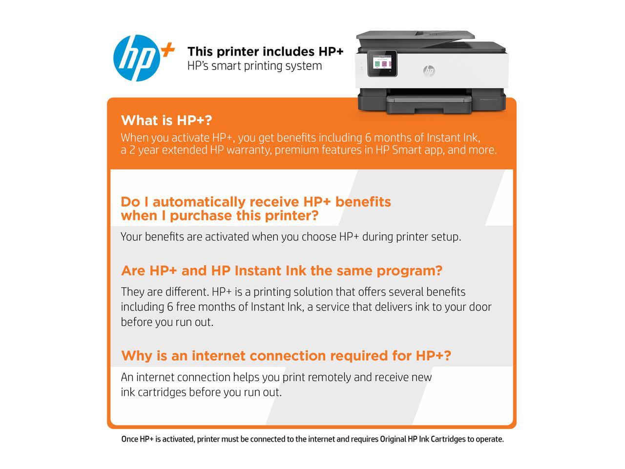 - ACTIVATE HP+ AND INSTANT INK AT PRINTER SETUP - You'll need an internet connection and credit card. Once HP+ is activated, your printer must be connected to the internet and requires Original HP Ink Cartridges to operate for the life of the printer.