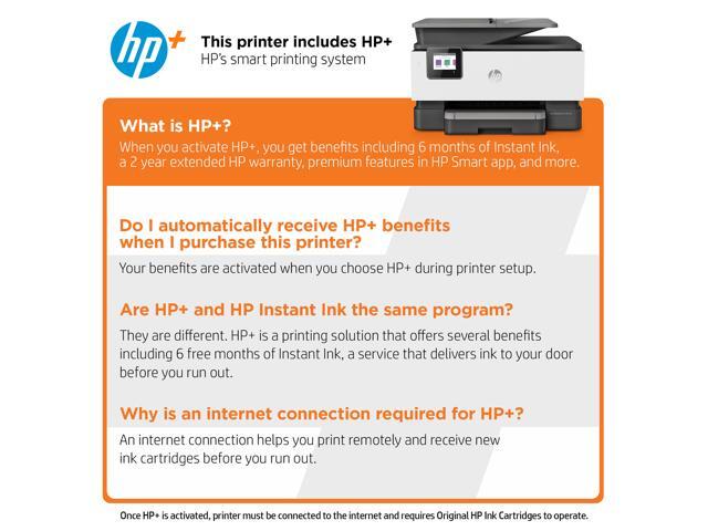 - ACTIVATE HP+ AND INSTANT INK AT PRINTER SETUP - Once HP+ is activated, your printer must be connected to the internet and requires Original HP Ink Cartridges to operate for the life of the printer.