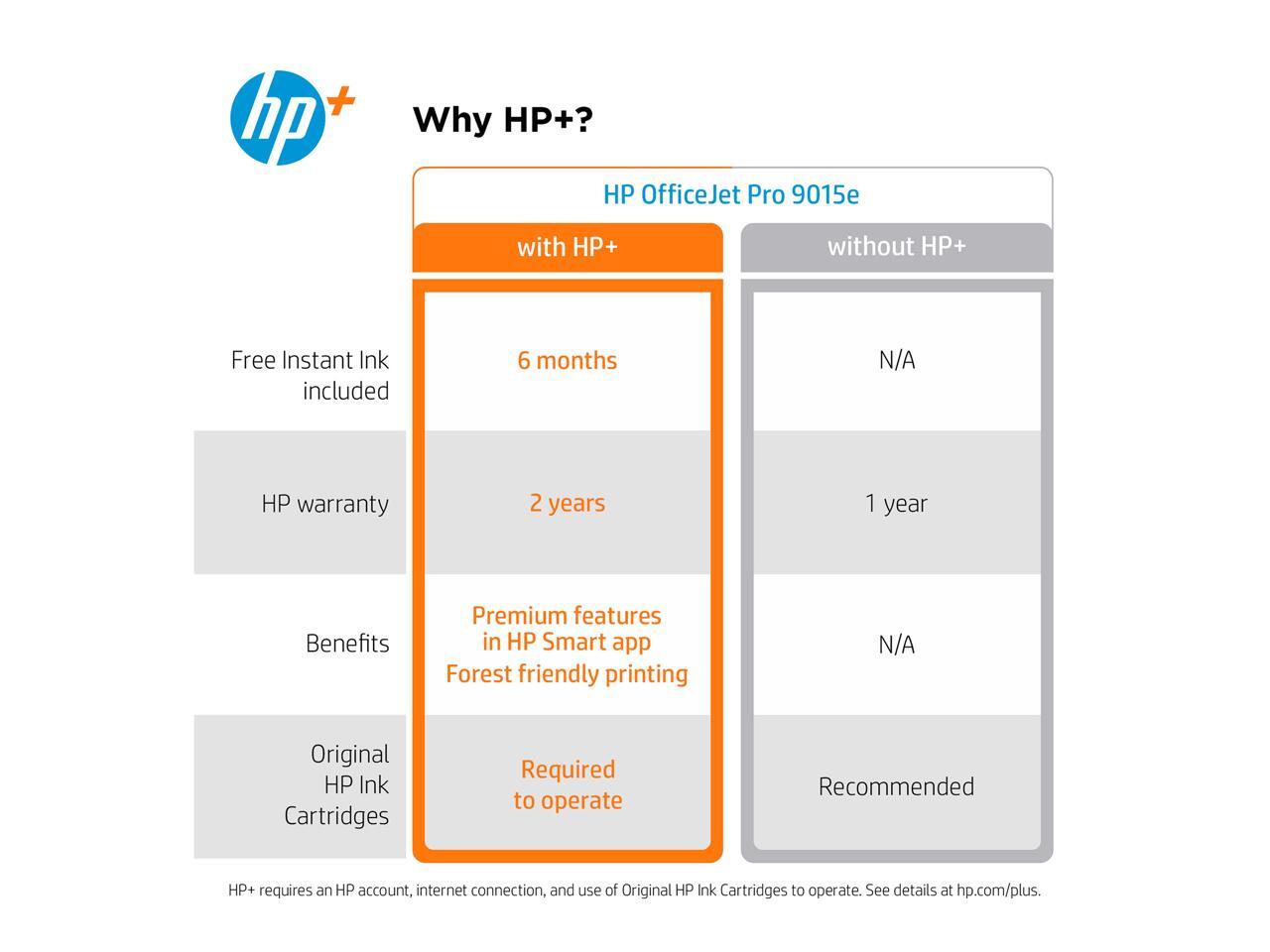 - FREE INK + DOUBLE THE WARRANTY WITH HP+ - Activate HP+ to get 6 free months of ink via Instant Ink and an extra year of HP warranty coverage