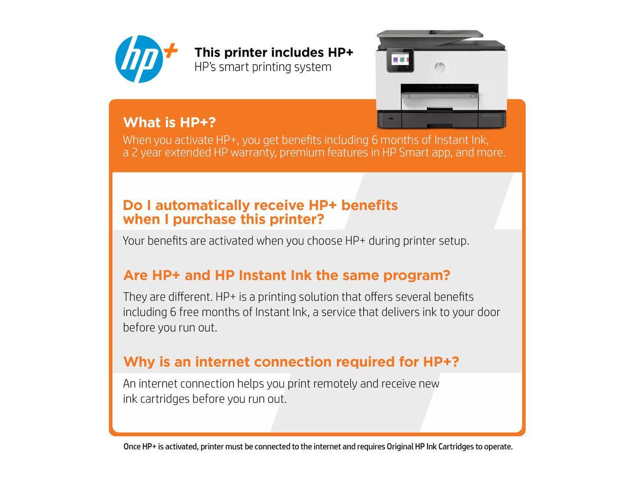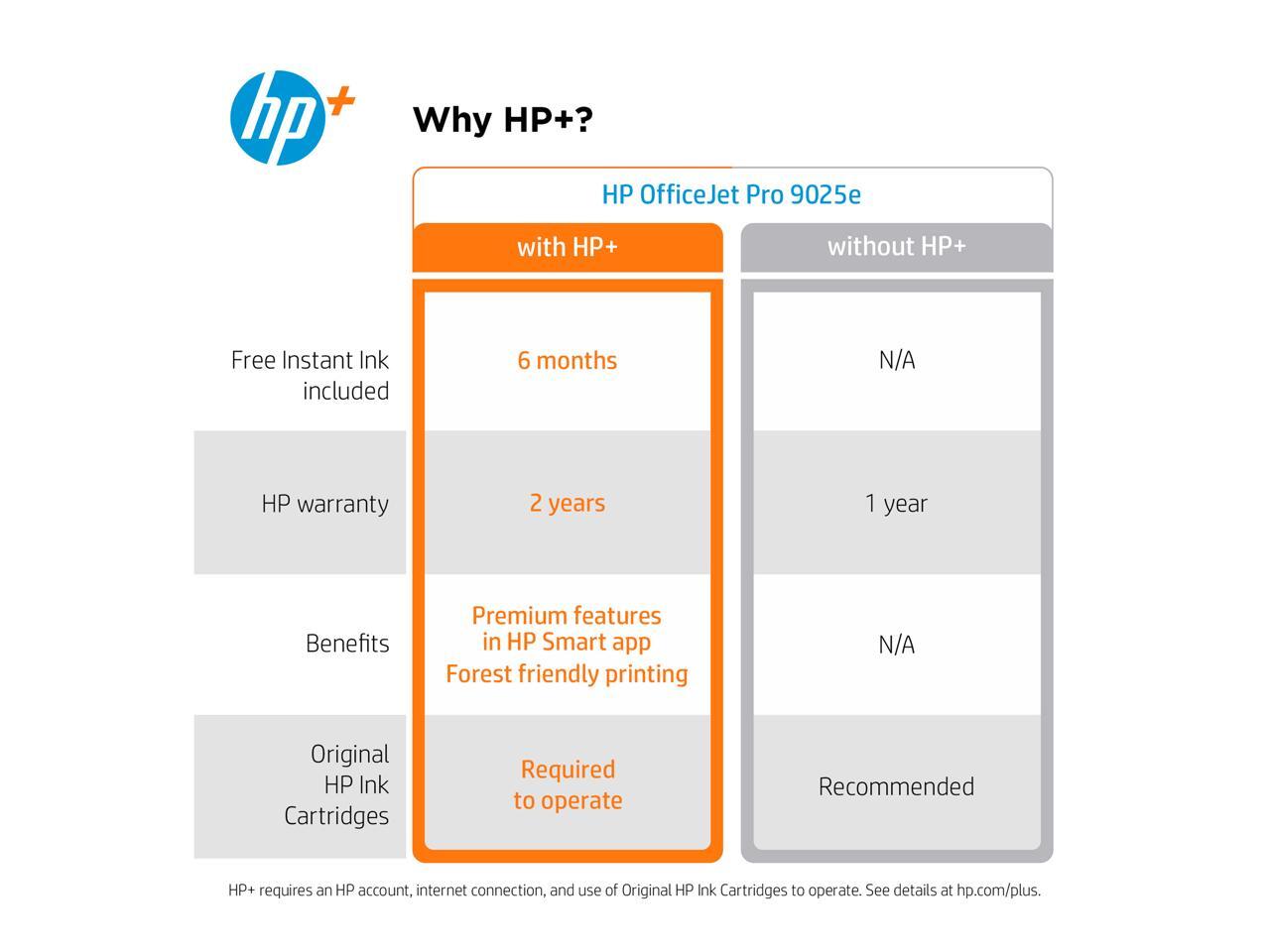 - ACTIVATE HP+ AND INSTANT INK AT PRINTER SETUP - Once HP+ is activated, your printer must be connected to the internet and requires Original HP Ink Cartridges to operate for the life of the printer.