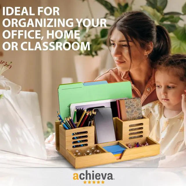 Bamboo Desk Organizer 7 Compartments 14.09 x 8.62 x 5.28 Natural Wood Grain Bamboo 71001