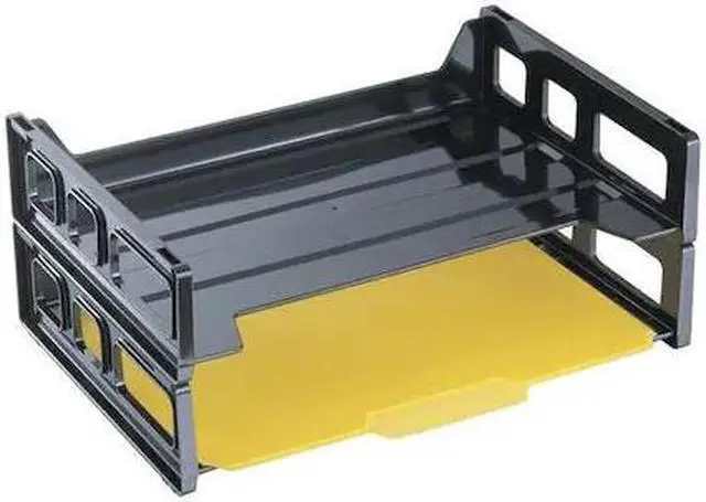 Letter Tray, File Size Letter, Number of Compartments 2, Black, Enamel Finish, Plastic, Length 9 1/4 in, Width 13 3/16 in, Height 2 3/4 in, Package Quantity 2. This item has been restricted from sale in the following state (s): []