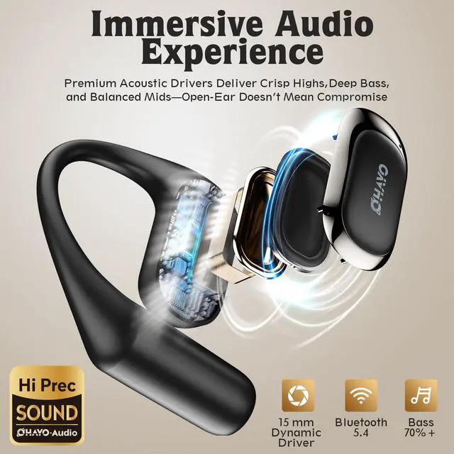 Uses air conduction (not bone vibes) for fuller 20Hz-20kHz sound. No vibration, better clarity.