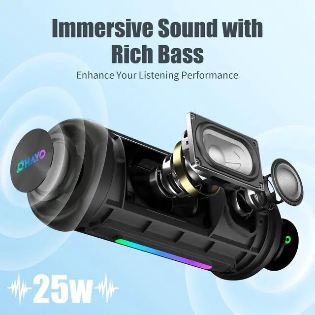 | Additional Features | Bass Boost, AUX, Hi-Res Audio, Bass Mode, 24-Hour Playtime, IPX7 Waterproof, TF Card Port, 25W Power, Dual Passive Radiators, Hands-free, True Wireless Stereo Pairing, Shockproof |