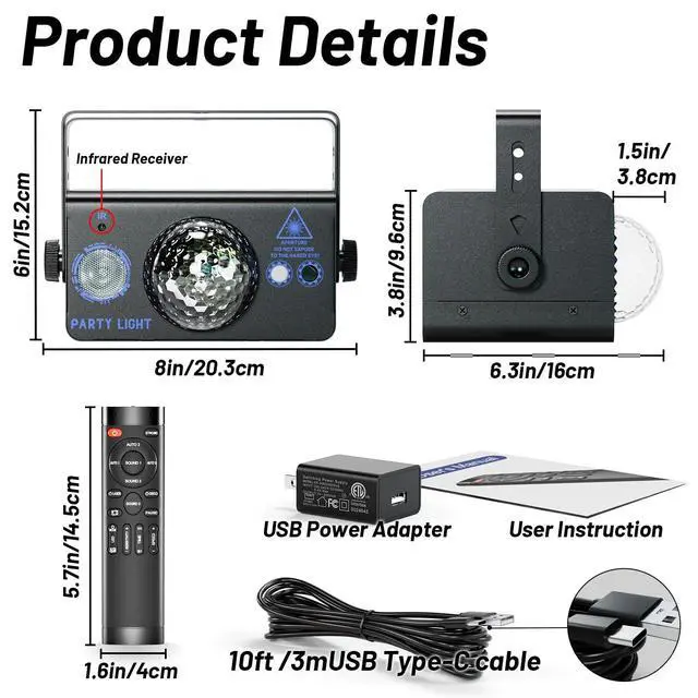 Just clapping your hand or put the disco lights near the rhythmic music. Light will twinkle by music beat. Perfect for home party entertainment. (Note: This product does not play audio)