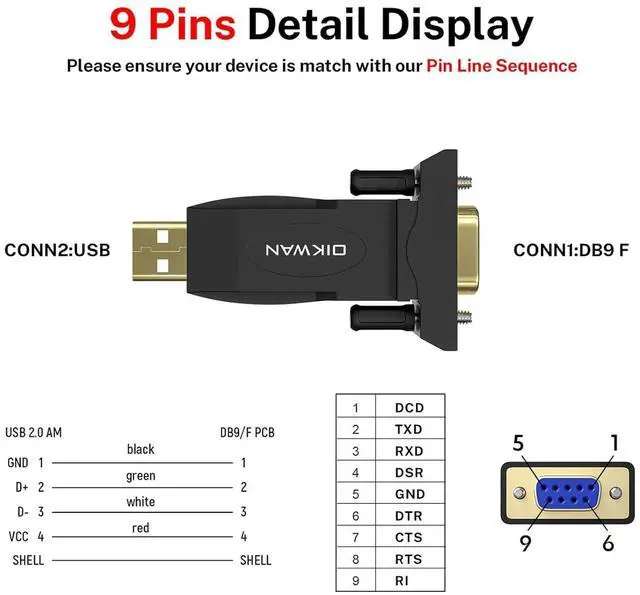 - OIKWAN USB to RS232 DB9 Serial Female Converter Adapter Cable is designed to connect serial devices such as DB9 equipped PCs, routers, GPS, barcode scanners, label writers, serial modems, digital cameras, card readers, palm PCs, Cellular Phones, PDAs,