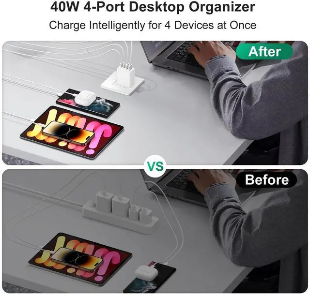 2 USB-C Ports + 2 USB-A Ports 40W Fast Charging