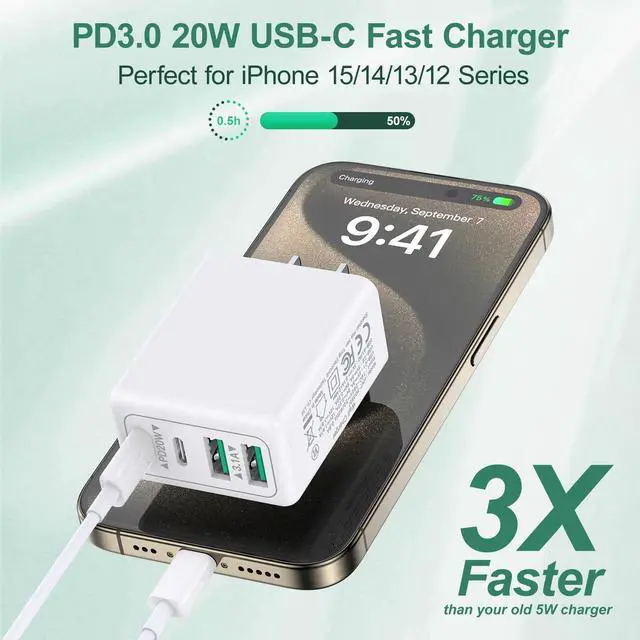 Supports PD3.0 & QC3.0 fast charging technology, compatible with iOS and Android devices.