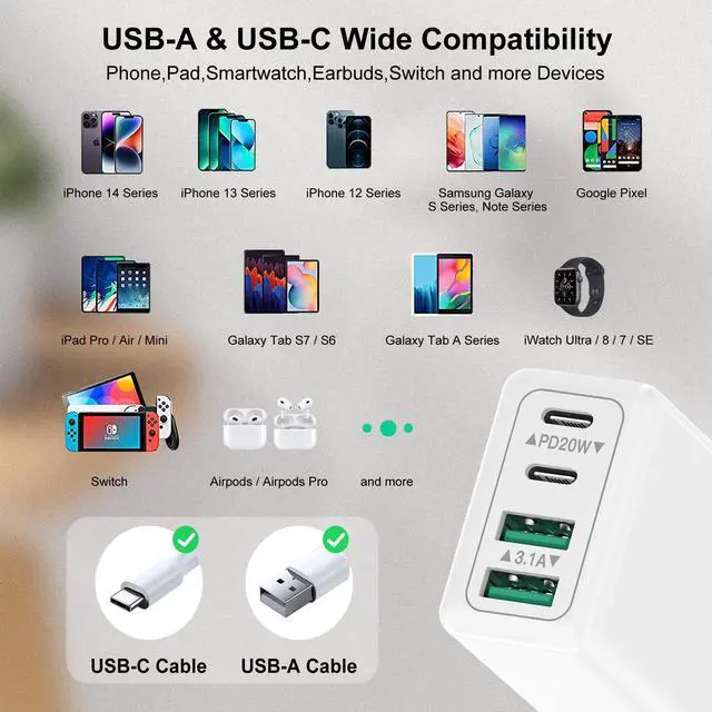 Switch, Camera, Earbuds, Smartwatches, E-reader, Portable Power Bank and more USB-A / USB-C devices.