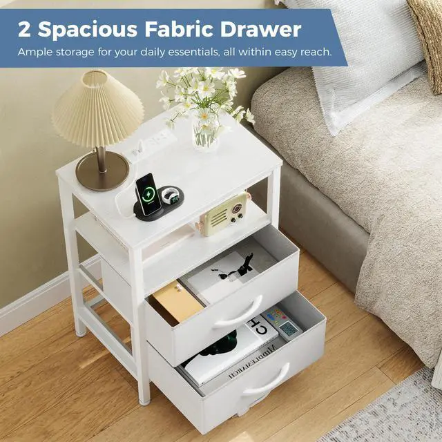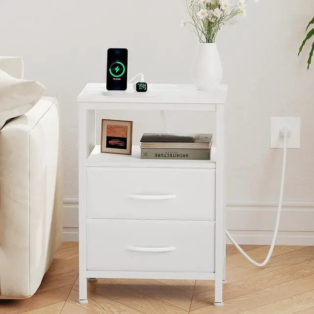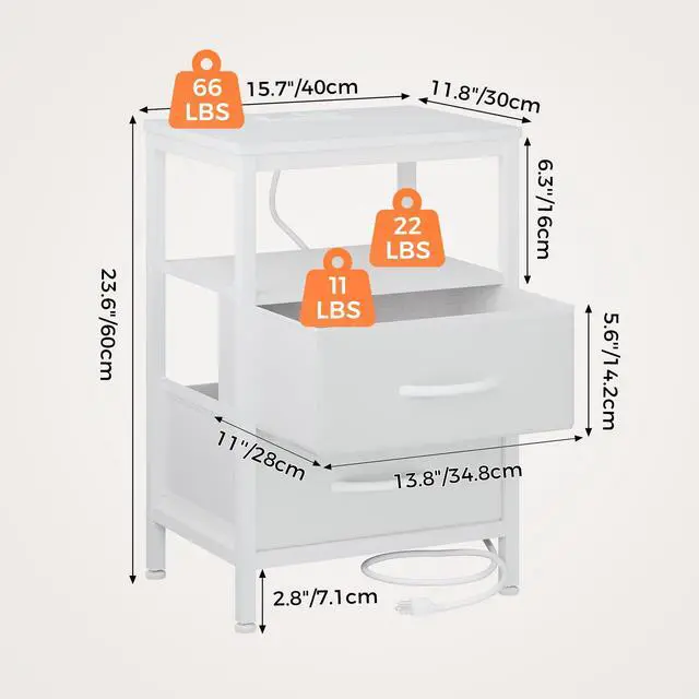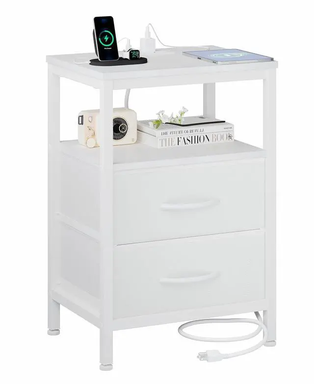 | Item Type Name | Bedside Table with USB Ports, AC Outlets & Fabric Drawers |