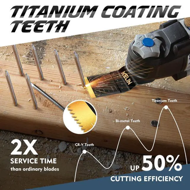 KELIN titanium oscillating tool blades have faster cutting speed and higher cutting efficiency.