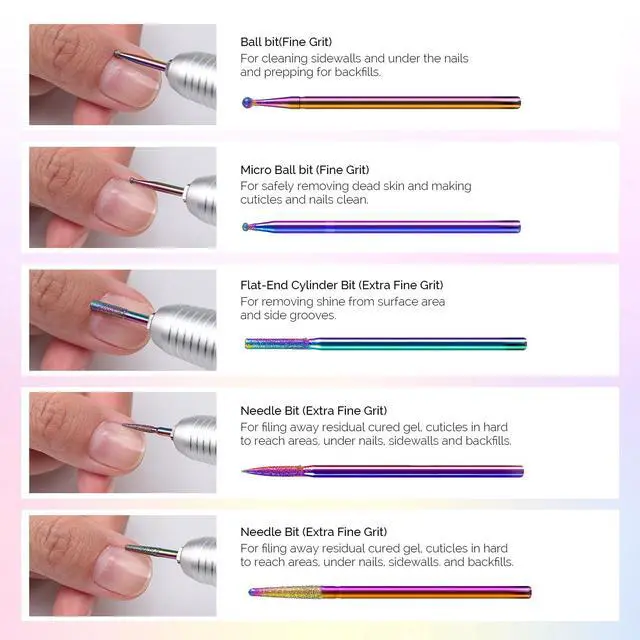 Safety Cuticle Nail Bits: Protect your skin from being harmed with superior craftsmanship and well-tested design. Gentle and smooth used, suitable for Nail Tech or Beginners.