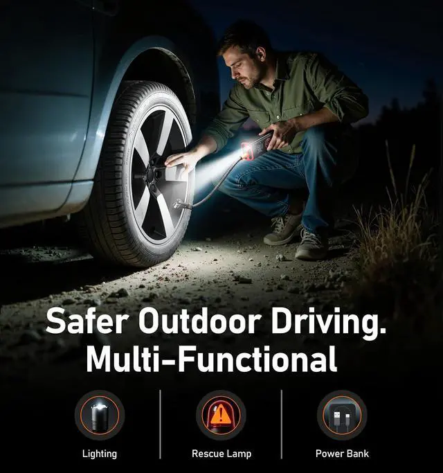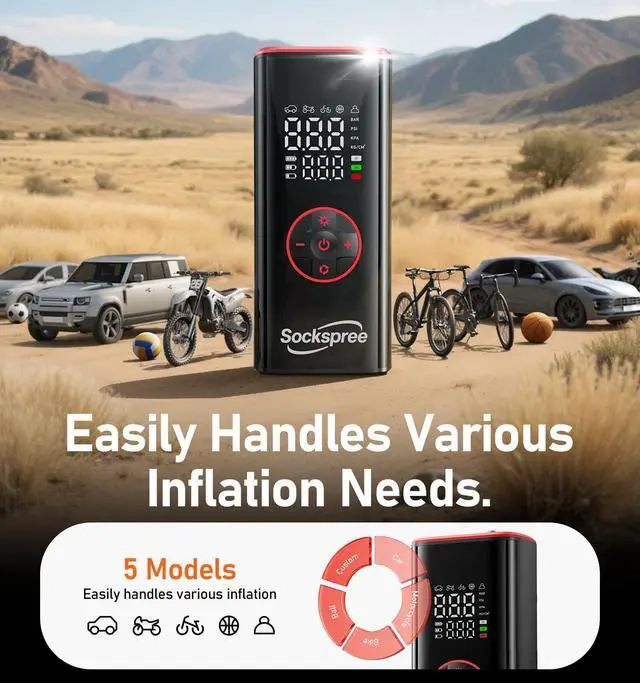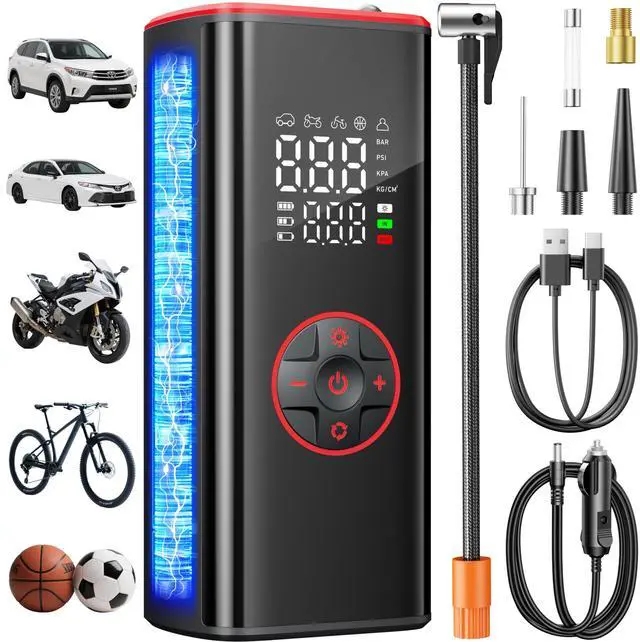 This tire inflator is designed for cars, motorcycles, bicycles, basketballs, and similar applications. It is not recommended for large trucks tires, as their higher pressure and volume requirements may exceed the device’s operational limits.