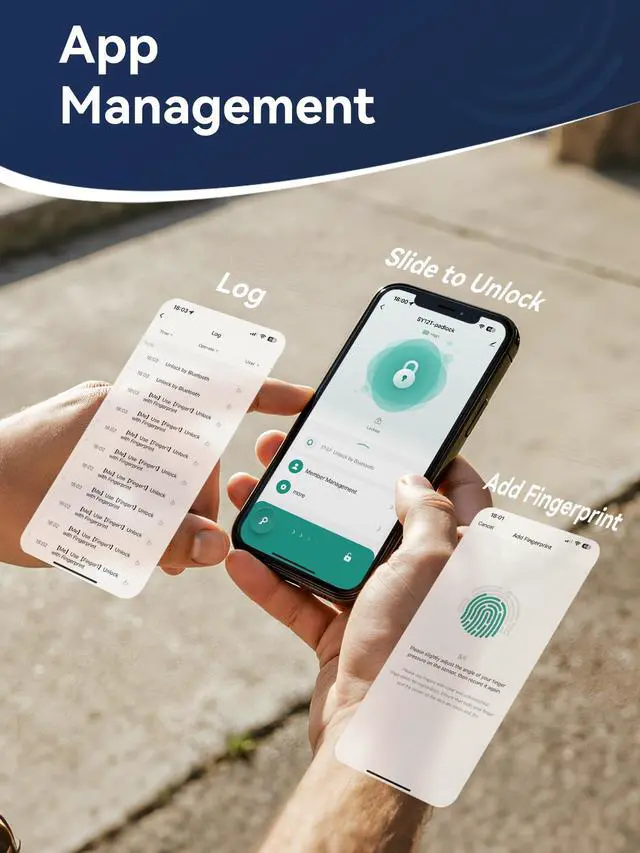 Download the "Tuya Smart" app and enable Bluetooth. To pair: press any key to wake the lock, then finish setup in the app. For best accuracy, scan each fingerprint from multiple angles (max 10 prints total). The whole process takes ~3 minutes.