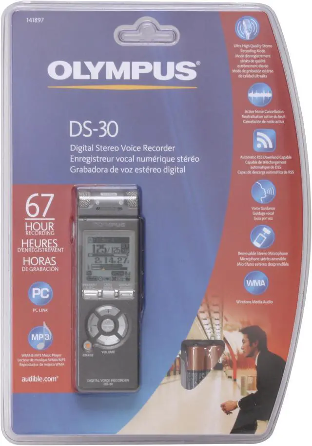 | Package Contents | DS-30 Digital Voice Recorder Stereo microphone USB Cable Stereo earphones DSS Player Ver.7 Software 2 AAA Alkaline Batteries Instruction Manual |