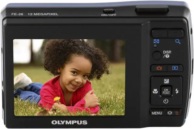 • newegg3X Optical ZoomThe Olympus FE-26’s 3X optical zoom lens brings far-away objects up close for exceptionally sharp, clear images. A total of 12X zoom is available with the camera’s 4X digital zoom capability.