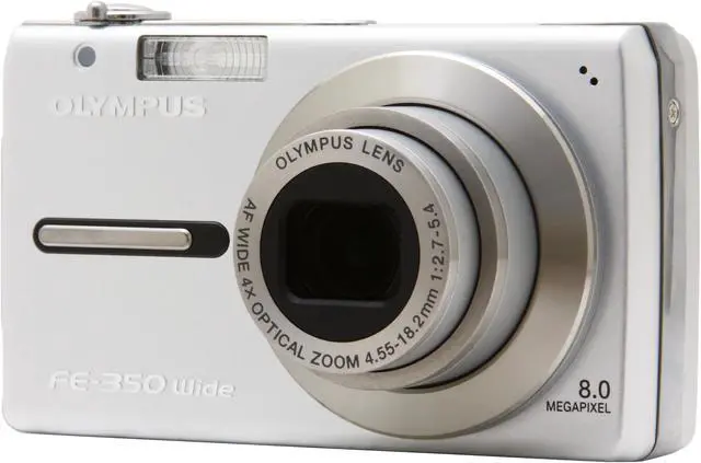 The Olympus FE-350 is a compact and rugged entry into the digital camera market. The wide-angle lens with 4X optical zoom lets you shoot a whole crowd or zoom in on a single subject for stunningly crisp detail. The in-camera help guide answers your questions, and teaches you how to take the photos you've always wanted, right on the spot. The 8MP sensor means your photos will retain their crisp detail and true color, even if you crop and enlarge them.