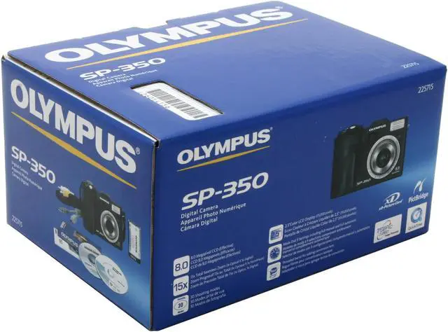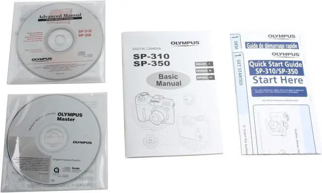 | Package Contents | SP-350 Digital Camera Strap Multi-connector for USB and A/V CR-V3 battery Quick Start Guide Basic Instruction Manual Warranty Card CD-ROM: OLYMPUS Master Software and Advanced Manual |