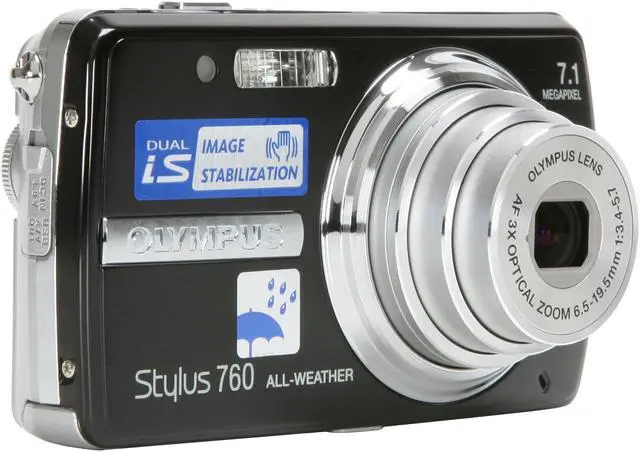 Life is a blur. Your images should be crisp and clear. The 7.1 megapixel Stylus 760 digital camera combines an impressive suite of features previously unavailable in a single Olympus model. New Dual Image Stabilization technology compensates for camera shake and freezes action with stunning clarity. The camera's All-Weather design seals out moisture so you can safely shoot in the elements. With Bright Capture Technology, you'll get vivid images in low light, without a flash. And share all your great shots on the 2.5" Wide-View LCD, featuring a backlight boost button for enhanced visibility even in direct sunlight.