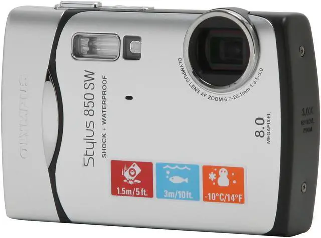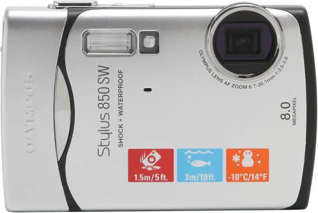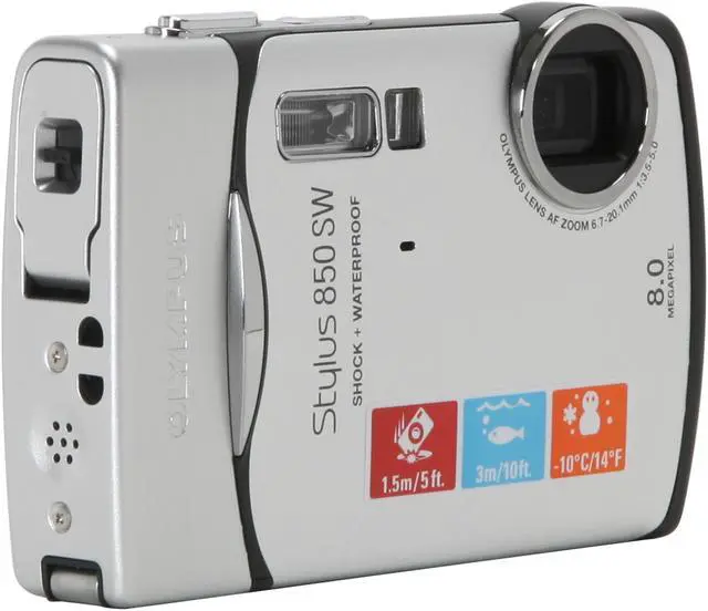ShockproofThe Olympus Stylus 850 SW’s durable exterior and interior construction absorbs impacts from drops (up to 5-ft) or other accidental traumas.
