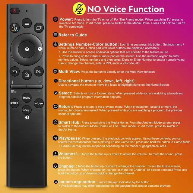Compatible TV ModelsBN59-01385A TV Remote for Samsung QN100B, QN95B, QN90B, QN85B, QN80B, Q60B, QN95BD, LS03B, LS03BD, LS01B, QN900B, QN800B, S95B, BG970N, LSP3B series TVs etc, Compatible with Samsung Smart G7, S9, M8, M80C, M70C, M50C, M70B, G85SB, G70B, G65B series Monitor etc